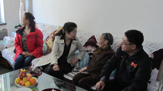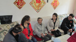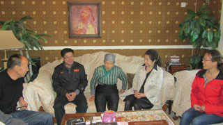 | 學(xué)院黨委副書記、紀委書記白托婭(右二)看望慰問拉巴哈(右三)老同志,黨群工作部部長李廣武(右一),黨群工作部副部長、工會主席李春燕(右四),離退辦副主任曹鐵強(右五)陪同。 |