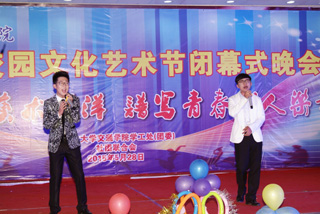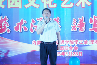 高飛副處長(zhǎng)致辭。他感謝為本次文化藝術(shù)節(jié)辛勤工作的老師和同學(xué)們。他說(shuō)文化藝術(shù)節(jié)是我們學(xué)院的非常重要的校園文化活動(dòng)之一,這次文化藝術(shù)節(jié)以系部為主體,突出了專(zhuān)業(yè)特色和專(zhuān)業(yè)優(yōu)勢(shì)。也吸引了南校區(qū)很多學(xué)院和同學(xué)的加入,這使得交通學(xué)院的校園文化在南校區(qū)起到了引領(lǐng)和帶動(dòng)的作用。他希望今后更多的同學(xué)加入其中,展現(xiàn)自己的特點(diǎn),挖掘自己的潛能,證明自己的能力。