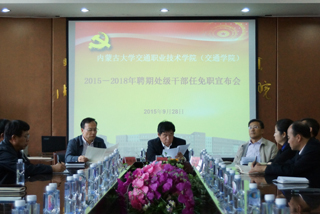 2015年9月28日下午,在交通樓A439會(huì)議室,校黨委召開(kāi)交通職業(yè)技術(shù)學(xué)院(交通學(xué)院)2015—2018年聘期處級(jí)干部任免職宣布會(huì)。
